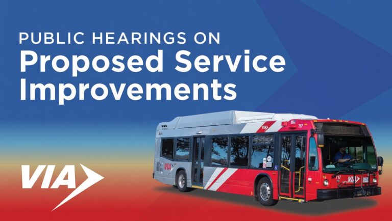 VIA provides regional multimodal transportation options that connect our community to opportunity, support economic vitality, and enhance quality of life throughout our region. VIA, recognized by the Texas Transit Association in 2016 as the outstanding Metro Transit Authority of the year, serves 14 member cities and the unincorporated areas of Bexar County, operating seven days a week on 90 routes. Last year, VIA provided 40 million rides across the region. VIA’s AAA bond rating reflects the organization’s sound management and financial practices. Visit www.VIAinfo.net for more information. Follow us on Facebook, Twitter, and Instagram.