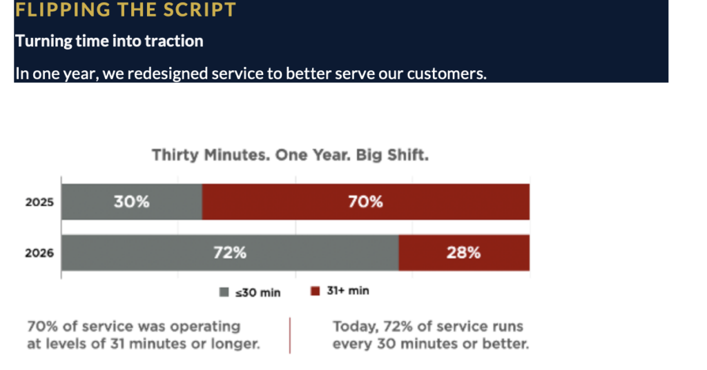 This year, those investments translated into meaningful improvements across our system, making a clear difference in the service we provide and the overall transit experience. As we move into 2026, our work continues full speed ahead, with focus on frequency, reliability, safety, and infrastructure—serving you better today and building for what comes next.