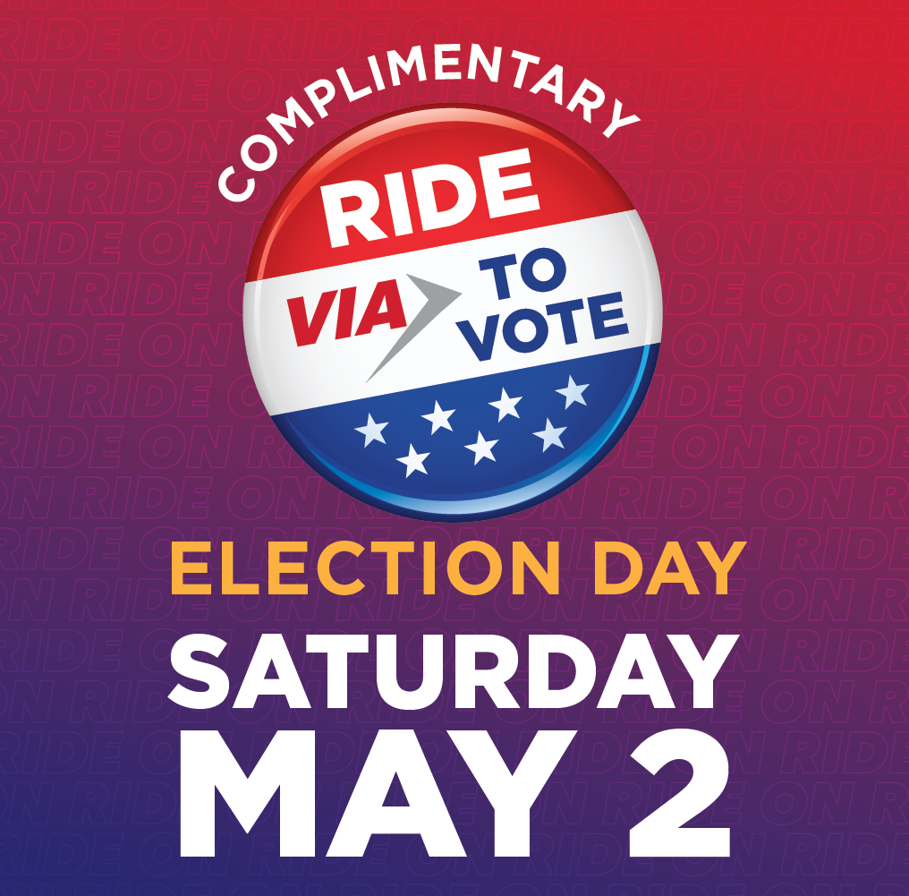 SAN ANTONIO (Apr. 28, 2026) — VIA Metropolitan Transit will offer fare-free service to polling locations for the Bexar County Joint General, Special and Bond Election on Saturday, May 2, 2026.