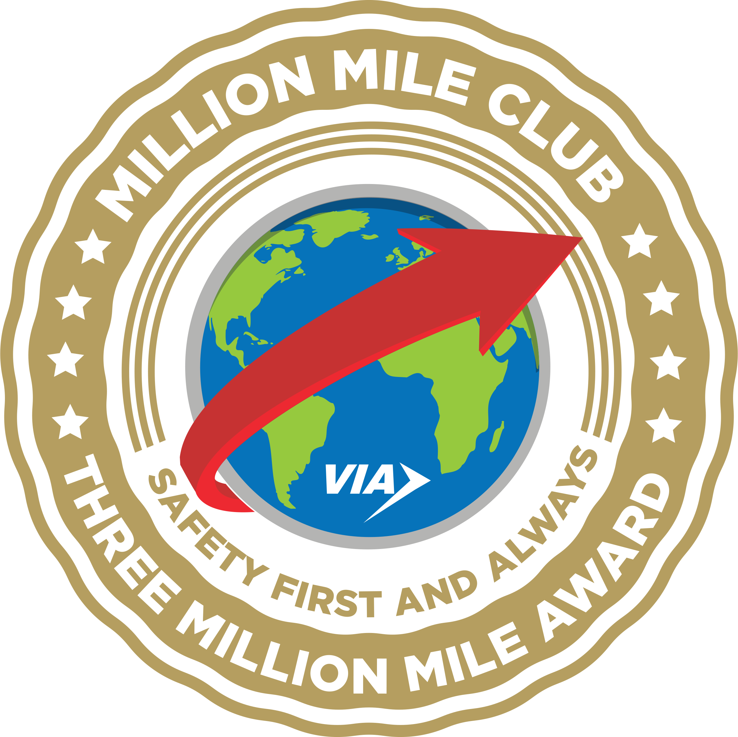 ♦ VIA has 359 operators who have attained Million-Mile Club status since 1998, including three operators who have reached three million miles.