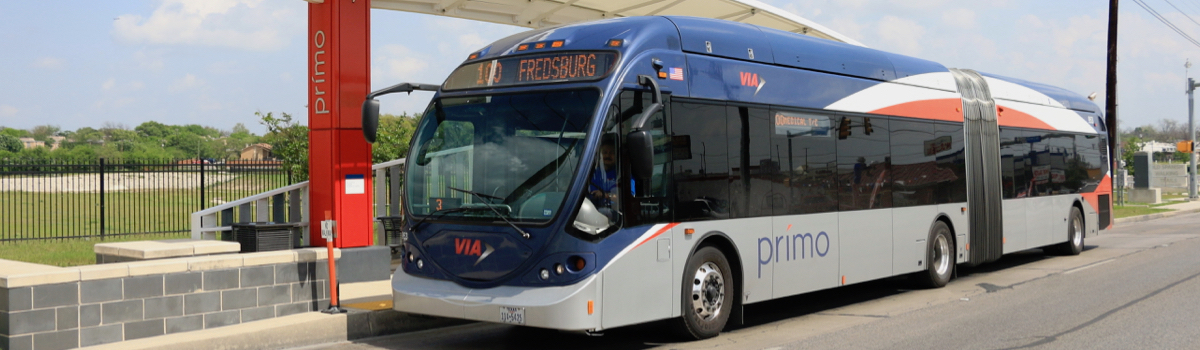 Prímo vehicles offer space for two wheelchairs, one new self-restraining rear-facing wheelchair space (60-foot buses only) and the standard forward facing wheelchair positions. VIA operators are required to secure all riders using the forward-facing wheelchair positions using a four-point securement system. When boarding the bus, please let the operator know if you plan on using the forward-facing position.